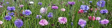 c'est l'éclosion des pionnières, les centaurées polka dot, bleues,