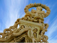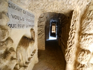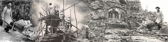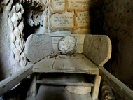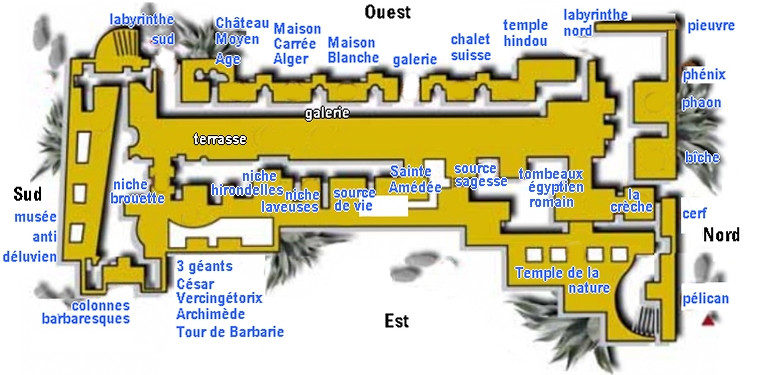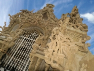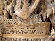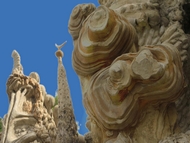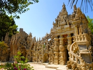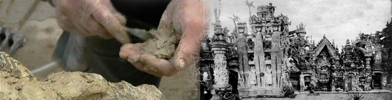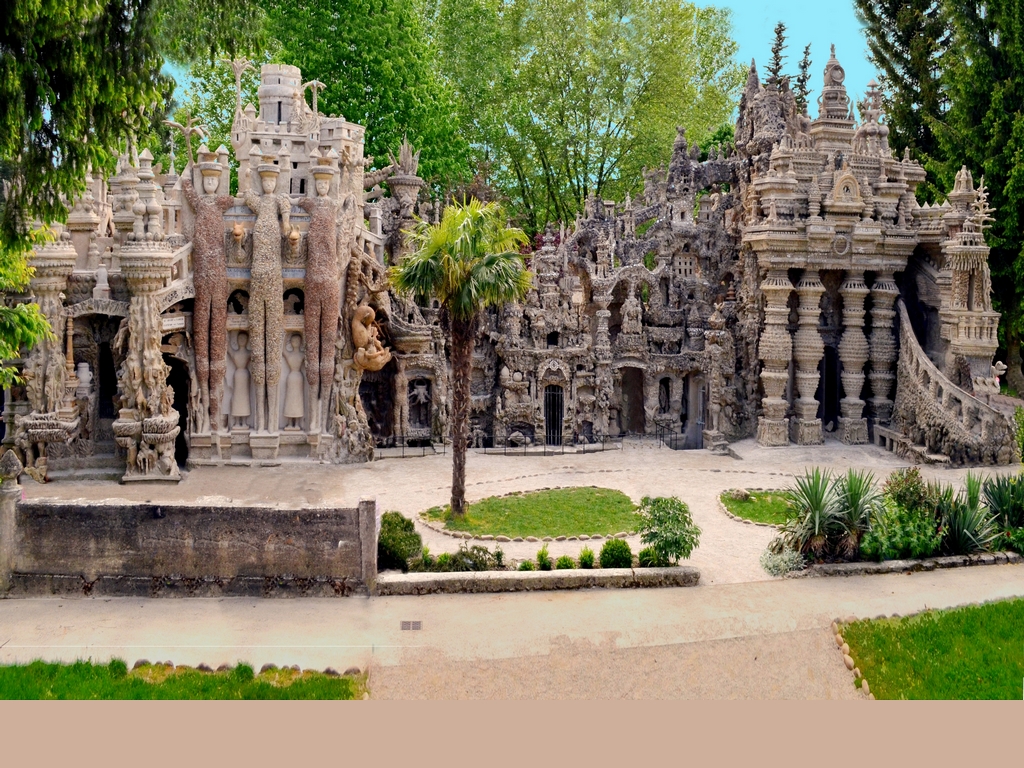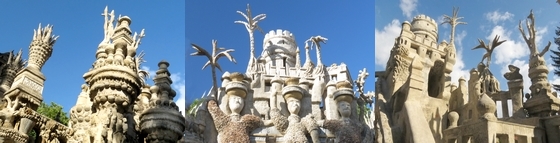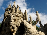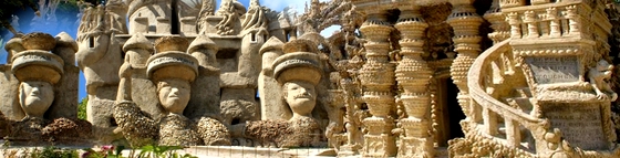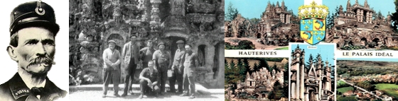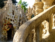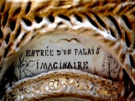 ![]() • Un festival étonnant de grandes figures humaines, colonnes hérissées, minarets, tourelles, escaliers, grottes, vases, animaux sculptés.. ![]() • Après avoir réalisé son "Palais de rêves" Ferdinand Cheval a voulu pour l’Éternité venir se reposer au champ de l’Égalité, dans l’enceinte du cimetière du village : "Le tombeau du silence et du repos sans fin" ![]() • Au fil des murs, Ferdinand Cheval a laissé des inscriptions pour la postérité : "Tout ce que tu vois passant est l'œuvre d'un paysan". ![]() ![]() |