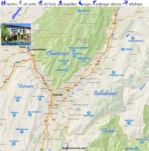 hiver... ski, piste, fond, patinage, raquettes, rando... L' Isère, c'est 34 stations de sports d'hiver, dont 12 de classe internationale, 2 500 kilomètres de pistes de ski alpin, 1 700 kilomètres de pistes de ski de fond, 460 remontées mécaniques, des paradis de randonnées, des circuits en raquettes, un extraordinaire terrain d'aventure pour les amoureux de neige et de beauté. A quelques pas de Grenoble ville des Jeux Olympiques d'hiver, le Gîte La Source est idéalement situé au carrefour des massifs grenoblois. ![]() ![]() ![]() |