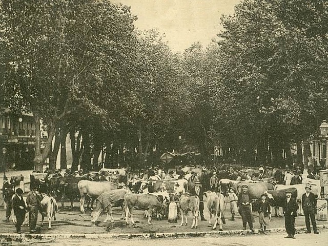 La genèse est bien sûr la légende de St Martin. On sait peu de choses de ses débuts, si ce n’est que... Depuis le Moyen Age à la Saint-Martin on faisait les grandes foires de l'année. Au 11 Novembre les champs sont vides, les récoltes faites, les semailles pas encore commencées, les vendanges viennent de se terminer, précédées des cueillettes pommes poires. les châtaignes, peuvent être librement glanées à partir de la St Martin. Les récoltes faites et en partie vendues, il y a de l'argent pour régler ses dettes! Chacun en profite pour engager les ouvriers agricoles et payer les baux de fermage. ![]() ![]() ![]() En autorisant la libre circulation des marchandises les Comtes de Savoie maîtres des lieux de 1029 à 1355 ont rendus possible une foire annuelle à Voiron. Un gros mois après la Beaucroissant, la mythique voisine, on tue le caillon et on descend à Voiron, occasion de se réunir autour des cochonnailles, et du vin nouveau qui se pressent pour être de la fête. On y vend les bestiaux, on achète les nouveaux matériels, et les provisions pour l’hiver. Dans les années 50, 1950 !, la veine agricole s’estompe, adieu veaux vaches devant la "cathédrale".. Un soubresaut occupe encore la grande avenue, ![]() ![]() et le carré paysan se réduit aujourd'hui à la place St Bruno. Les élus et les jeunes agriculteurs, ornés de beaux colliers de noix, y célèbrent la pérennité du monde de la terre. ![]() ![]() ![]() ![]() ![]() ![]() Le temps et ses conjugaisons joue toujours les invités surprises. Les dictons défient Météofrance: • l'été de la Saint Martin dure trois jours et un brin. • Si l’hiver va droit son chemin, Il commence à la Saint Martin. • À la St-Martin, la neige est en chemin. Si elle n'y est pas le soir, elle y est le matin. • Bel été de Saint-Martin présage un hiver certain. • À la St-Martin, l'hiver est en chemin, manchons aux bras et gants aux mains. • Qui veut du mal à son voisin, lui fait acheter un goret à la Saint Martin. • Pour Saint-Martin mène la chèvre au bouquin. • Tue ton cochon à la Saint-Martin et invite ton voisin. • À la Saint-Martin, bois le vin et laisse l'eau aller au moulin. • À la Saint-Martin, jeune ou vieux, bois le vin. Temps de chien ou de grenouille l'été indien se confond avec celui de la Saint-Martin, après les premières gelées de l'automne et juste avant l'hiver. Alors qu’il pleuve, qu’il vente…on va faire le mail ! ![]() ![]() ![]() La foire fait partie du patrimoine voironnais, un moment incontournable. 700 commerçants, sédentaires ou camelots venus de très loin y attirent 200000 chalands. Les « pays voironnais » ne manquent jamais ce rendez vous incontournable… et lorsque le soleil est de la partie, la compression de la foule est démentielle. La foule La foule des grands jours. Une occasion unique de flâner dans les rues à la recherche de l’article coup de cœur. Convivialité, générosité et richesse des échanges font de cette foire annuelle le rendez-vous privilégié de tous les chasseurs de bonnes affaires. Le dimanche c'est la marée humaine. Il en faut du temps et de la patience pour circuler dans les rues du centre-ville. ![]() ![]() ![]() On avance tant bien que mal dans les allées entre les barbes à papa, les kébab, les churros les gaufres et les marrons, les étals de chemises ou chaussures, les chapeaux nouvelle mode ou les soutifs anciens. Pas de foire sans camelots! Ils redoublent de virtuosité oratoire pour vendre leurs produits et faire rire les badauds. Entre 2 étals de lingerie des artisans jonglent de leur dextérité pour faire vivre leurs métiers. ![]() ![]() ![]() Les buvettes ne désemplissent pas, le vin chaud réconforte, le demi mousse du plaisir de se retrouver. «Mes parents, mes grands-parents, mes arrière-grands-parents venaient avant moi. Maintenant, ce sont mes enfants et petits-enfants qui prennent le relais » On se retrouve pour acheter, discuter, refaire le monde ou simplement partager l’ambiance. et on se donne rendez vous "à l’an prochain !" Les villes jumelles de Voiron tiennent le parvis de la "cathédrale", emblème des liens européens. Allemagne, Italie, Croatie, Angleterre tissent des contacts, et chacun se retrouve sur le stand d’Herford et fait son plein annuel d’amateurs de saucisses. ![]() L’incontournable groupe folklorique de Salmorenc nous entraine dans ses danses dauphinoises à la croisée des influences régionales et historiques, associant folklore populaire et modernité. ![]() ![]() ![]() La fête foraine la nuit tombe vite à cette époque, la fête foraine s’est posée sur l'aval du Mail. ![]() ![]() ![]() Les manèges tournent à plein régime, Aux cris et aux rires des visiteurs chahutés par les nombreuses attractions se mêlent les inévitables odeurs de crêpes, de gaufres... Les cœurs chavirent dans les manèges, le sang cogne dans les autotamponneuses, les grandes roues bercent leurs guirlandes de nacelles hurlantes. ![]() ![]() ![]() Des yeux écarquillés d'enfants, des nostalgies de parents, des flonflons éternels... c'est l'heure de rentrer emportant jusqu'à la prochaine St Martin un coin d'imaginaire. ![]() ![]() |