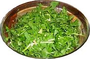 • dans un grand saladier, disposer la salade et la mélanger avec le jambon,