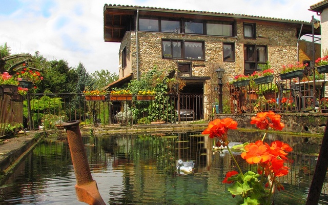 architecture exceptionnelle au pied des alpes, dans un environnement de jardin thématique, source et bassins vivants. Confort ***