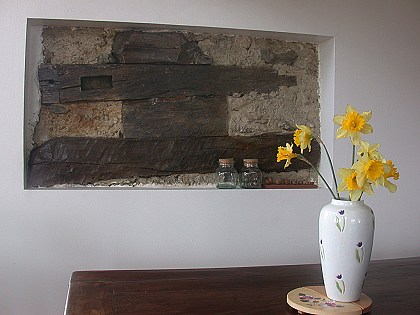 témoin du passé les 4 morceaux de bois curieusement incrustés dans le mur.
