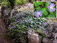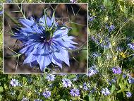 une touffe de pervenche vinca, une bordure de gaillarde, une tache de nigelle arrivée par hasard