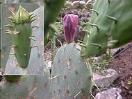 premier soin, un cactus opuntia schumannii, lui vient d'un ancêtre en pot récupéré chez grand-mère