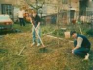 tuteurage du rosier, défonçage du socle de cadran.. coup de main du voisin...