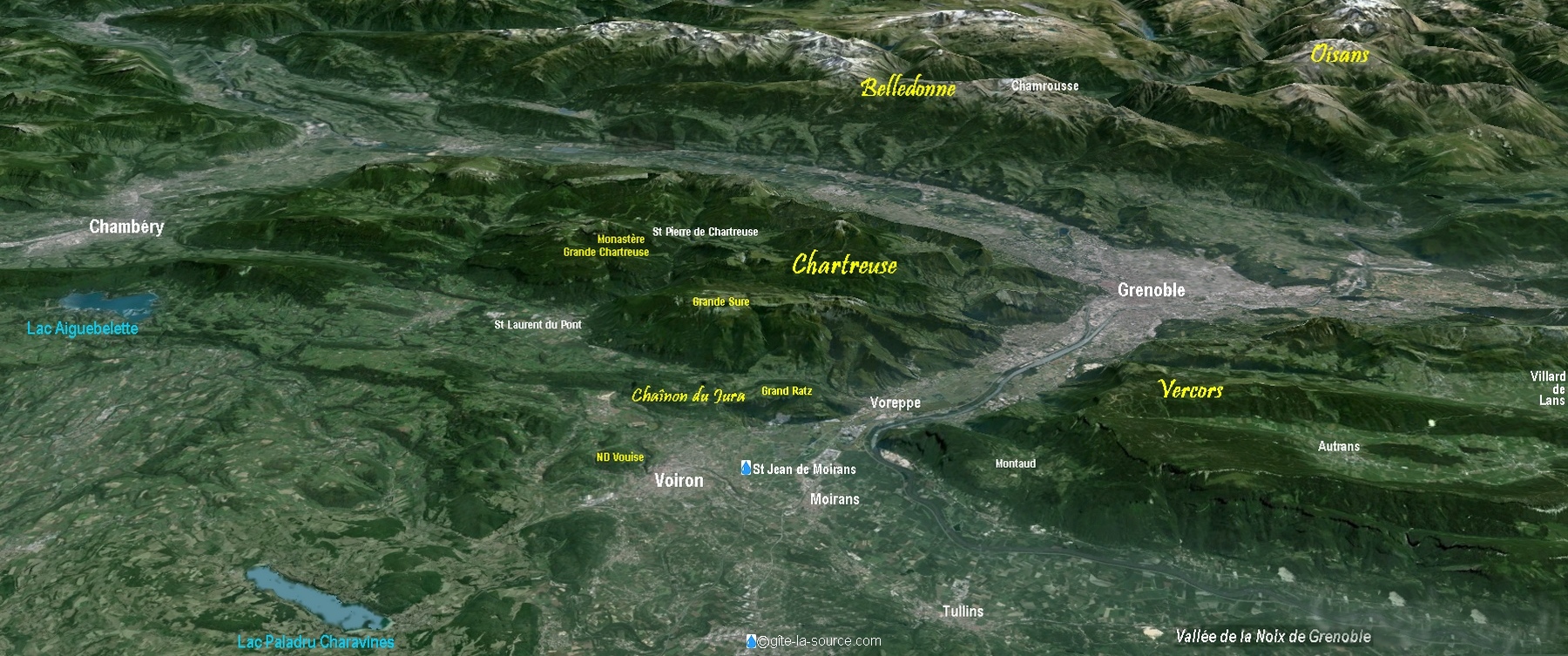 une architecture exceptionnelle au pied des alpes, panorama sur 5 chaînes de montagnes: Jura, Chartreuse, Belledonne, Oisans, Vercors. Grenoble, Voiron, Lac Paladru. 2013