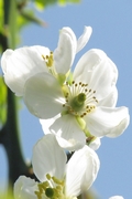 Période de floraison : mars avril Couleur des fleurs : blanche. Hauteur : 3 m Type de végétation : vivace, très rustique au gel Type de feuillage : caduc |