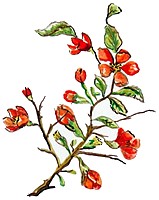 ![]() Le nom latin du cognassier du japon était Cydonia japonica en référence au vrai cognassier. Il est originaire d'Asie et plus particulièrement du Japon. Il a été introduit en France à la fin du 18ème siècle. |