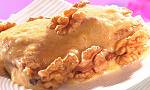 Ajoutez le beurre fondu refroidi, les noix pilées et 3 biscuits réduits en poudre.