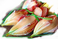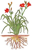 lis de St Jacques Fleurs portées par des hampes, forme en entonnoir, et étamines en évidence. ![]() racine tubéreuse comme pomme de terre, crus ou cuites, boutons floraux sautés dans le poêlon, pétales et sépales trempés dans de l'oeuf battu comme pour du pain doré, glaçages de gâteau avec des pétales et sépales colorées. sirop d 'hémérocalle sur de la crème glacé, sur des ailes de poulet .... Les pétales servent de décoration dans les coupes de dessert, sorbets, glaces, salades de fruits. ![]() ![]() pour 4 personnes - 300 grammes de saumon fumé. - 200 grammes de fromage en crème. - 1 c. à table de jus de citron. - 1 petite échalote hachée finement - quelques tranches de saumon fumé pour décorer chaque fleur. • passer le reste des ingrédients au robot culinaire. • cueillir les fleurs à la dernière minute, les rincer à l'eau froide. • garnir délicatement chaque fleur de la garniture, • décorer de petites tranches de saumon fumé, ajouter des câpres au goût, • servir sur un lit de laitue avec un petit blanc bien frais.