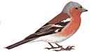 le dessous orange-rosé et les bandes alaires blanches et le croupion