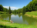 Le parc, ses plans d’eau, ses allées et ses grands arbres.