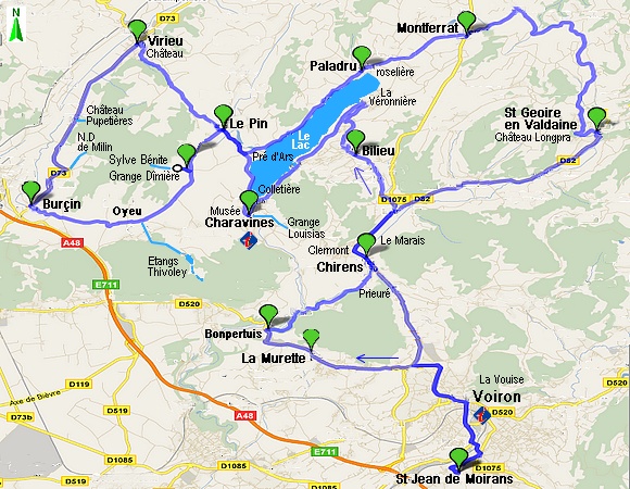 Prendre à droite vers Burçin, puis vers Virieu, à la sortie de Ternin, prendre à