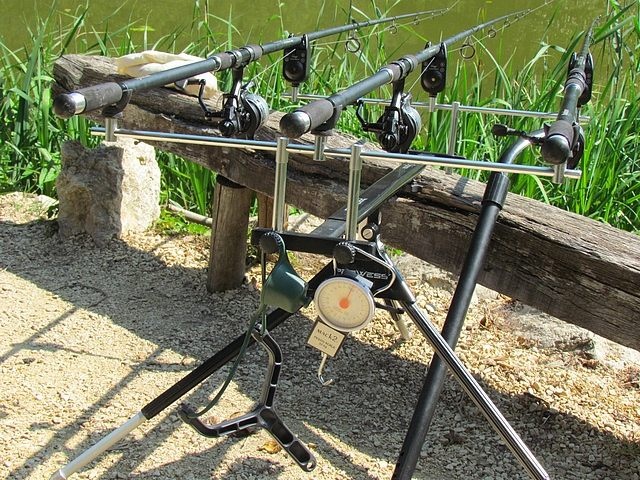 Lignes, fils, épuisettes, appâts multicolores, collections d'hameçons...