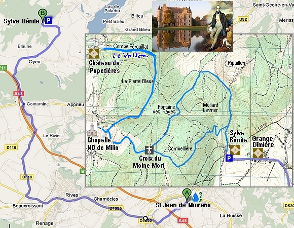 ![]() 1 • La "croix du Moine mort" perpétue le souvenir d'un Chartreux de la Sylve, frère Eugène, victime en 1590, des soldats de Lesdiguières. A l'époque le chef de guerre protestant cherchait le sanctuaire de ND de Milin. Les ayant pilotés sur le sentier, Eugène fut lâchement abattu par eux à 1/2h de la chapelle. 2 • La Chapelle de N.D de Milin est l'un des plus anciens sanctuaires à Marie en Dauphiné. En 1111, Notre Dame de Milin était déjà vénérée. Sa construction aurait été entreprise suite à un vœu formulé par trois chevaliers français revenant de Terre Sainte où ils s'étaient rendus comme Croisés et qui furent assaillis en plein mer par une violente tempête. Sur le point de périr, ils firent vœu, s'ils échappaient au naufrage, de faire élever un sanctuaire à Marie. Cette chapelle est connue de très loin pour son pèlerinage annuel. Chaque année, aux environs du 8 septembre, a lieu un grand rassemblement des fidèles. 3 • Sur le flanc d'une colline boisée à laquelle il s'adosse, se creuse "la Combe", le fameux Vallon qui a fourni le titre d'un poème célèbre, le Vallon. Le jeune Aymon De Virieu, et son condisciple et ami d’enfance un certain… Alphonse De Lamartine eurent l’occasion de savourer, entre 1803 et 1819, au cours de leurs nombreuses balades à cheval, un paysage typiquement romantique, propice aux rêveries des deux enfants. “Ce vallon est situé dans les montagnes du Dauphiné, aux environs du Grand-Lemps, il se creuse entre deux collines boisées, et son embouchure est fermée par les ruines d'un vieux manoir qui appartenait à mon ami Aymon de Virieu. Nous allions quelquefois y passer des heures de solitude, à l'ombre des pans de murs abandonnés que mon ami se proposait de relever et d'habiter un jour. Nous y tracions en idée des allées, des pelouses, des étangs, sous les antiques châtaigniers qui se tendaient leurs branches d'une colline à l'autre…” 4 • Le Château de Pupetières, propriété de la famille de Virieu construit au XIIIème siècle, fut détruit à la révolution, ce patrimoine a été restauré par Eugène Viollet le Duc en 1861. Ce château Néo-Gothique est un des chefs-d'oeuvre de l'architecture du XIXème, le célèbre architecte a su associer la pierre, la brique, le pisé, le galet en pesci avec une harmonie parfaite qui permet à ce lieu de conserver son âme d'antan. 5 • un sentier balisé entre Mallein et la combe Ferrouillat est en réalisation. Ce tracé au coeur du vallon Lamartine, classé au patrimoine national, à un intérêt touristique, dans un cadre sauvage et relativement protégé. |