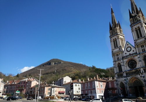 Voiron "la ville porte de Chartreuse", l'église St Bruno, la Statue de Vouise là-haut..